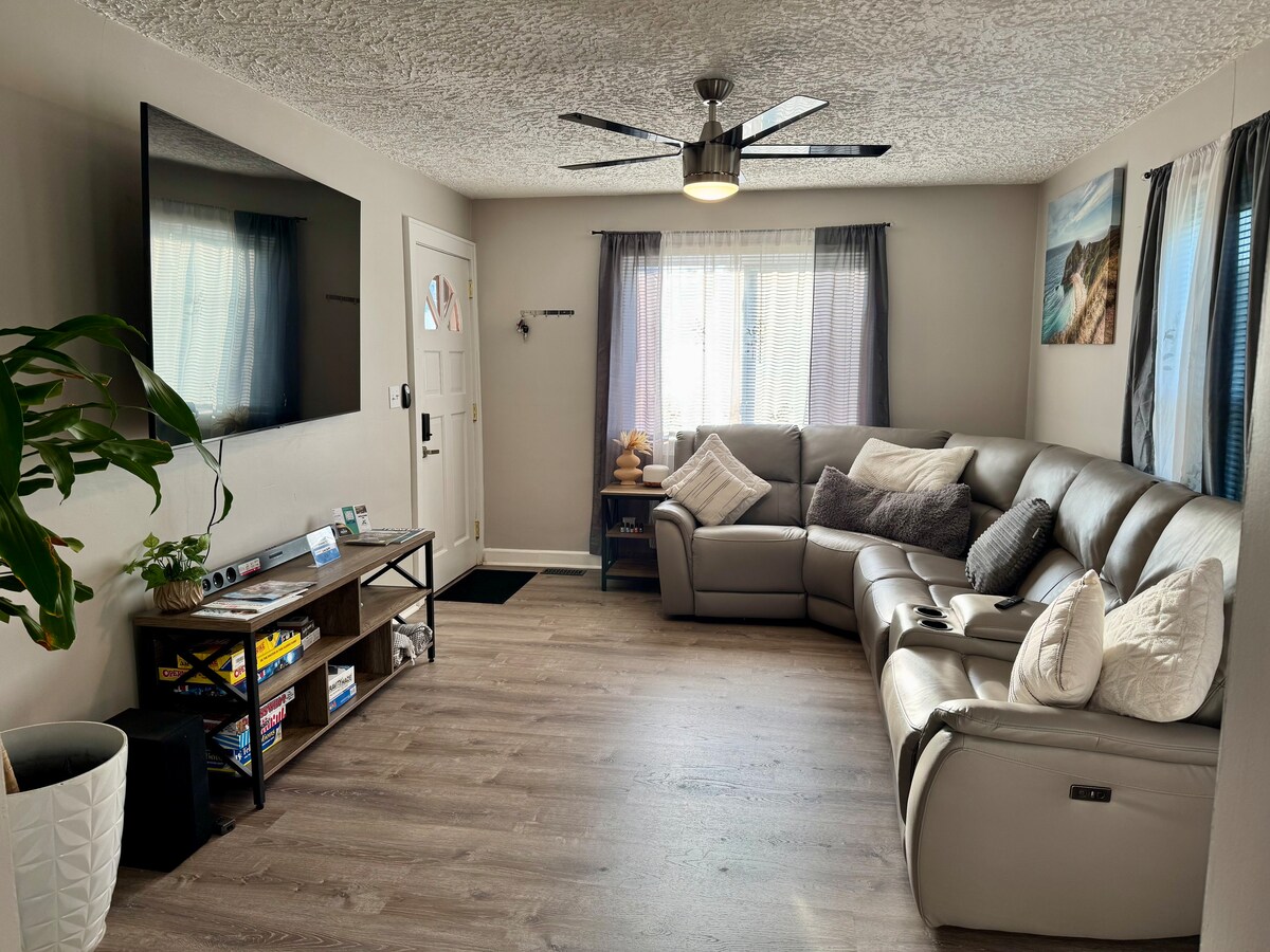 Sleeps 6. Enjoy our newly remodeled centrally-located home JUST 1.7 miles from I-26 (Exit 22). Amazing outdoor space in a fully fenced in backyard with smokeless firepit, outdoor fireplace, basketball & playground. Across from JC Country Club & Golf. 2.2 miles to Downtown Johnson City. 3 miles to Watauga River. 3.4miles to ETSU & VA Hospital. 4 miles to JC Medical Center. 4.8 miles to Boone Lake. 15.4 miles to Bristol Motor Speedway. NFL Blitz Arcade. Books & Games.