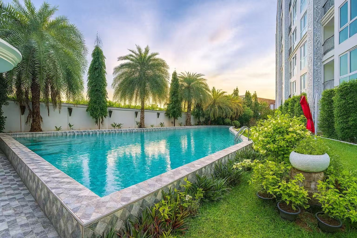 Apartamento con jardín urbano, piscina, gimnasio, paseo peatonal y vistas encantadoras de Pattaya
