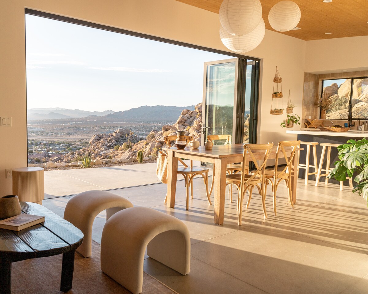 Ubicada en la cima de la Mesa, esta casa de nueva construcción en 10 acres de tierra ofrece vistas al Parque Nacional durante el día y destaca la vasta Vía Láctea por la noche. Sumérgete en la bañera doble con patas de garra y contempla un mar de árboles de Josué o admira el cielo del desierto en el porche trasero mientras las estrellas fugaces se elevan sobre tu cabeza. Si buscas una escapada lejos de las multitudes, pero aún cerca de toda la «diversión» que Joshua Tree y Yucca Valley tienen para ofrecer, no busques más allá de Ladera House.