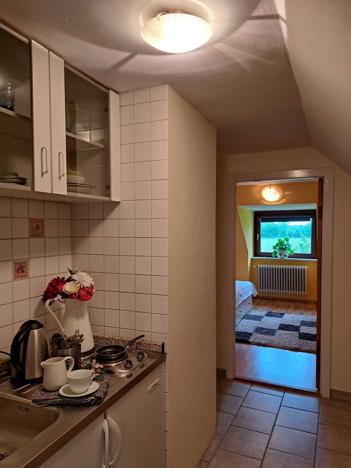 Pasa la noche en el antiguo establo restaurado con techos abovedados de ladrillo en «nuestra pequeña granja» con ganado pequeño y en una ubicación tranquila. Ofrecemos un apartamento de 75 metros cuadrados con una cama doble disponible, que también se puede configurar como dos camas individuales y un sofá cama (1,4 x 1,8 m) en una habitación separada. También hay una cama armario de 0,9 x 2,0 m de tamaño en el salón. Accesible a nivel de calle con entrada independiente a la casa y terraza.