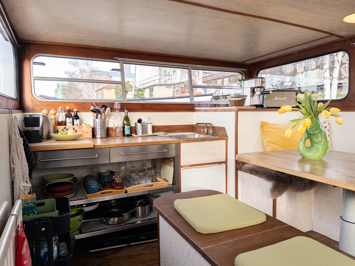 Casa flotante singular con jacuzzi privado de estilo vintage