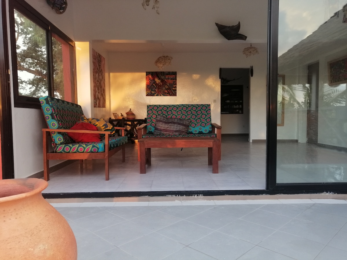 Le Hôme Casamance: Venga a disfrutar en familia o con amigos de nuestra Villa "Teranga" de 6 personas en esta villa renovada en 2023, situada en un condominio de 6 hectáreas en un parque verde, totalmente cerrado y vigilado, con acceso a la playa. También es posible alquilar toda la casa (14 camas y 3 baños, dos cocinas, condiciones para ver en el sitio en la sección "Villa entera").