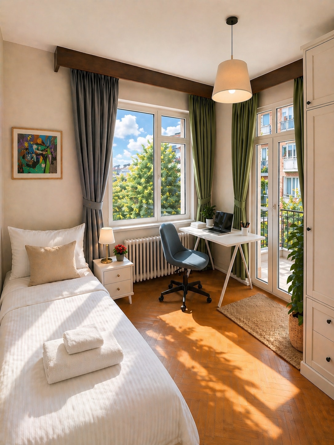 Alójate en Kadıköy, un tranquilo barrio en el lado asiático de Estambul. Camina hasta la orilla del mar, la avenida Bağdat, Caddebostan o el muelle de Moda en 5 minutos. Los trenes Marmaray te llevan a Üsküdar, Taksim, Beşiktaş, el casco antiguo, Sultanahmet, Gálata, Santa Sofía, la avenida Istiklal y los principales puntos de interés del lado europeo en menos de 20 minutos. Tendrás una habitación privada en un piso compartido con sala de estar, cocina americana, baño y balcón. Wifi, aire acondicionado (en el salón), toallas incluidas. La zona combina parques verdes, tiendas y excelentes cafeterías.