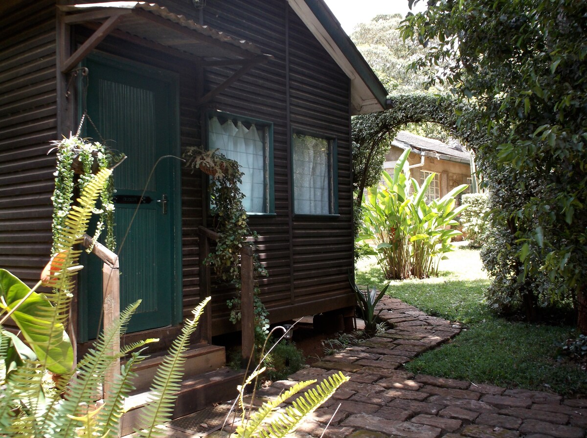 Situada en el corazón del frondoso suburbio de Karen; esta elegante casa de campo alpina de un dormitorio está escondida fuera de la vista en un rincón de nuestro jardín de cuatro acres. Ideal para viajeros individuales y parejas. No apto para personas con problemas de movilidad. No se permiten niños pequeños debido a la empinada escalera. La propiedad se encuentra a menos de 1,5 km del centro comercial Hub y a solo 2 km del centro Karen.