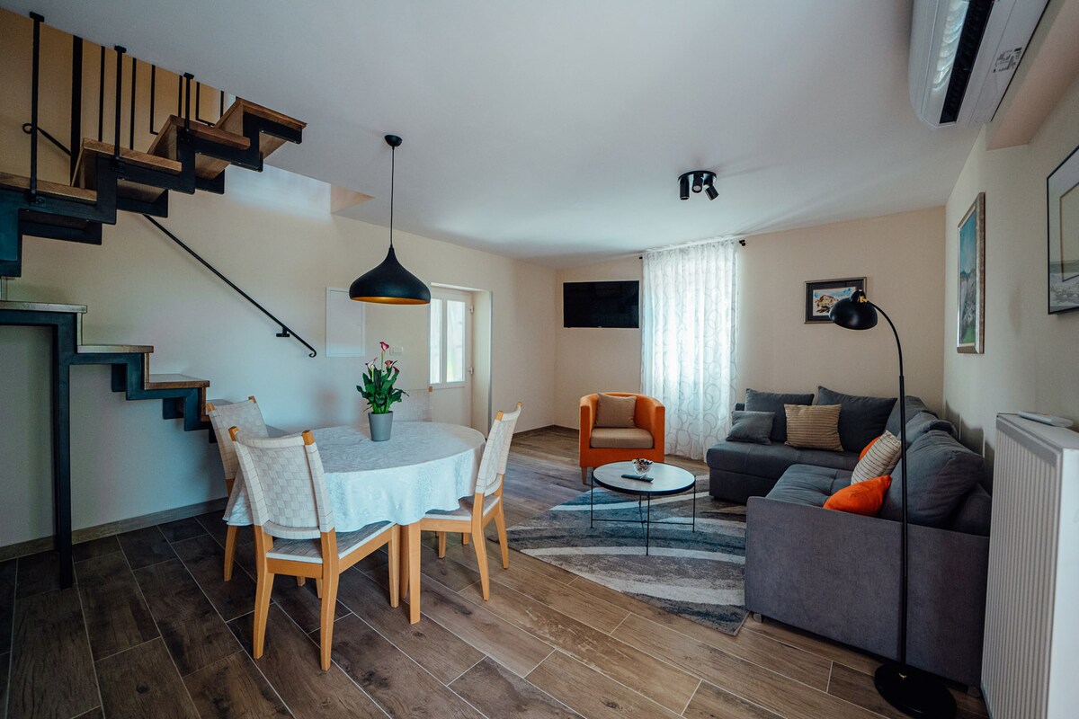 El apartamento se encuentra ubicado en el centro de Imotski cerca del Lago Azul. Hay un alojamiento de lujo con aparcamiento privado gratuito y una hermosa vista a la montaña Biokovo. Baño privado, TV de pantalla plana, canales por cable, wifi gratuito, sala de estar, cocina y comedor equipados, parte de baldosas de la terraza. El apartamento puede relajarse en la terraza y cerca podrá disfrutar de un paseo por la ciudad y de la belleza natural de Blue y Red Lake.