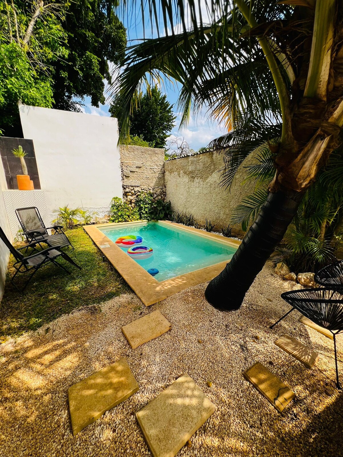 Hermosa casa restaurada a pasos del corredor gastronómico y del Parque de la Plancha. Ideal para relajarse en el corazón del Centro Histórico, rodeado de los mejores restaurantes, bares, tiendas y espacios culturales. A solo dos cuadras de Paseo de Montejo, Casa Jade combina arquitectura, confort y estilo. Disfruta de su lujosa piscina, hamaca y áreas perfectas para relajarte. Cuenta con WiFi, Alexa y TV para una estancia cómoda y moderna.