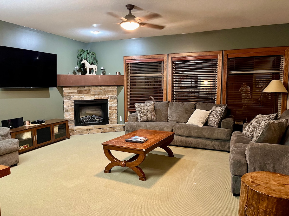 Chalet de esquí en la famosa estación de esquí/parque de bici de montaña Big White. Ubicado en Happy Valley, apto para familias, que es el hogar de: - Pista de patinaje - Parque de metro - Torre de escalada helada - Alfombra mágica - Trineo de perros: paseos en moto de nieve - Fuegos artificiales: esquí de fondo, raquetas de nieve y senderos para perros. - Góndola gratuita a la aldea principal (3 minutos a pie o en esquí). - Asador/salón *Bañera de hidromasaje cerrada en verano