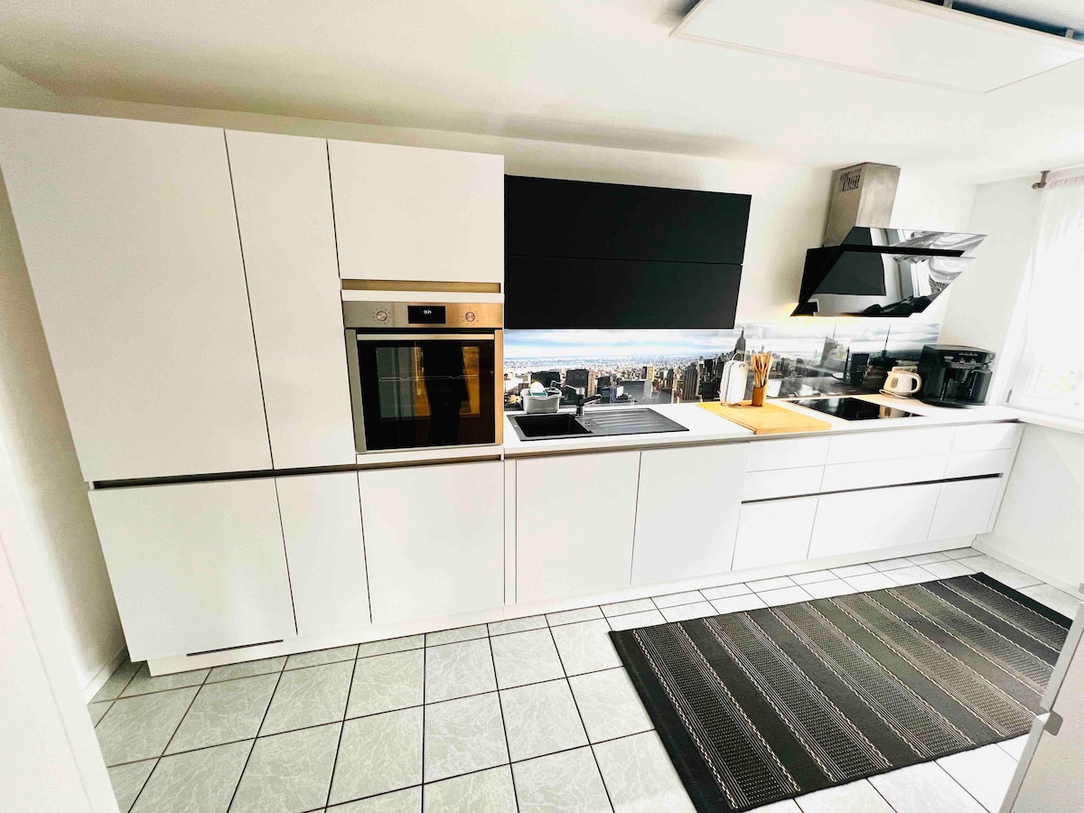 Bienvenido a DND Apartments ¿Busca un alojamiento único? Descubra nuestro loft de diseño de 170 m² con fantásticas vistas sobre Wurzburgo. Mobiliario de alta calidad: → La mejor ubicación (cerca de la residencia, instalaciones comerciales, conexión con el centro de la ciudad). → 3x dormitorios con camas KINGSIZE → Televisores SMART con Netflix y Xbox → Cocina totalmente equipada → Lugar de trabajo y WLAN de alta velocidad → Lavadora y secadora → Logia soleada → 2 plazas de aparcamiento → Cuna