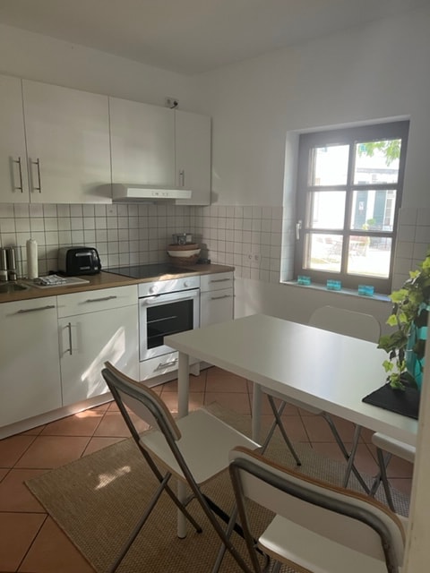 Unser „kleines Appartment“, bietet eine gemütliche und stilvolle Übernachnachtungmöglichkeit, für bis zu zwei Personen. Hier kannst du in der voll ausgestatteten Küche kochen und vom Esstisch den wunderbaren Ausblick, auf den Drachenfels genießen. Das Badezimmer befindet sich, eine Treppe darunter. Hier gibt es eine geräumige Wasserfalldusche. Das „Highlight“ der Gründerzeitvilla, unser großer Garten mit altem Baumbestand lädt zum Verweilen und Entspannen ein.