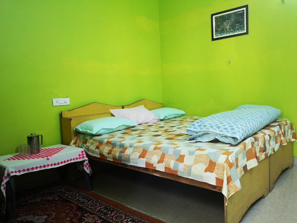 Experience the ultimate retreat at our exclusive family homestay near Corbett Tiger Reserve! Book a room or entire floor with 3 luxe bedrooms with attached bathrooms & balcony, , a working kitchen, spacious lobby, and picturesque garden. Stay entertained with high-speed WiFi and a smart TV offering 12+ OTT platforms. Indulge in our serene alcohol-free haven for priceless family bonding amid nature's embrace. Your perfect escape awaits!" Note: To book entire floor, book for 6-9 persons.