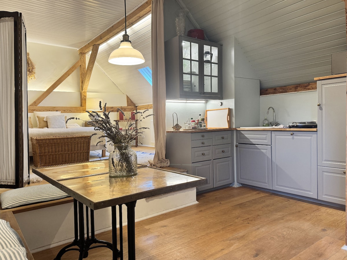 ¿Le apetece escapar a un lugar precioso con aires tropicales? Este alojamiento es ideal para una escapada romántica o un momento de relajación y bienestar. Este apartamento tipo «loft» consta de una sala de estar de 30 m² y un baño contiguo. Este alojamiento está situado en el pueblo rural de Roppenheim. En las cercanías: - Comercios y artesanos locales - Alemania a cinco minutos - El pueblo de marcas «The Style Outlet»
