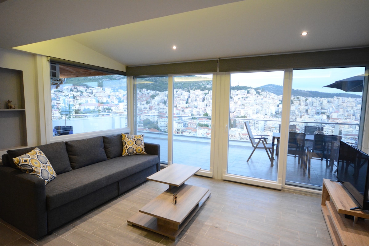 Loft de lujo en la azotea • Vistas de 360° a Kavala y terraza