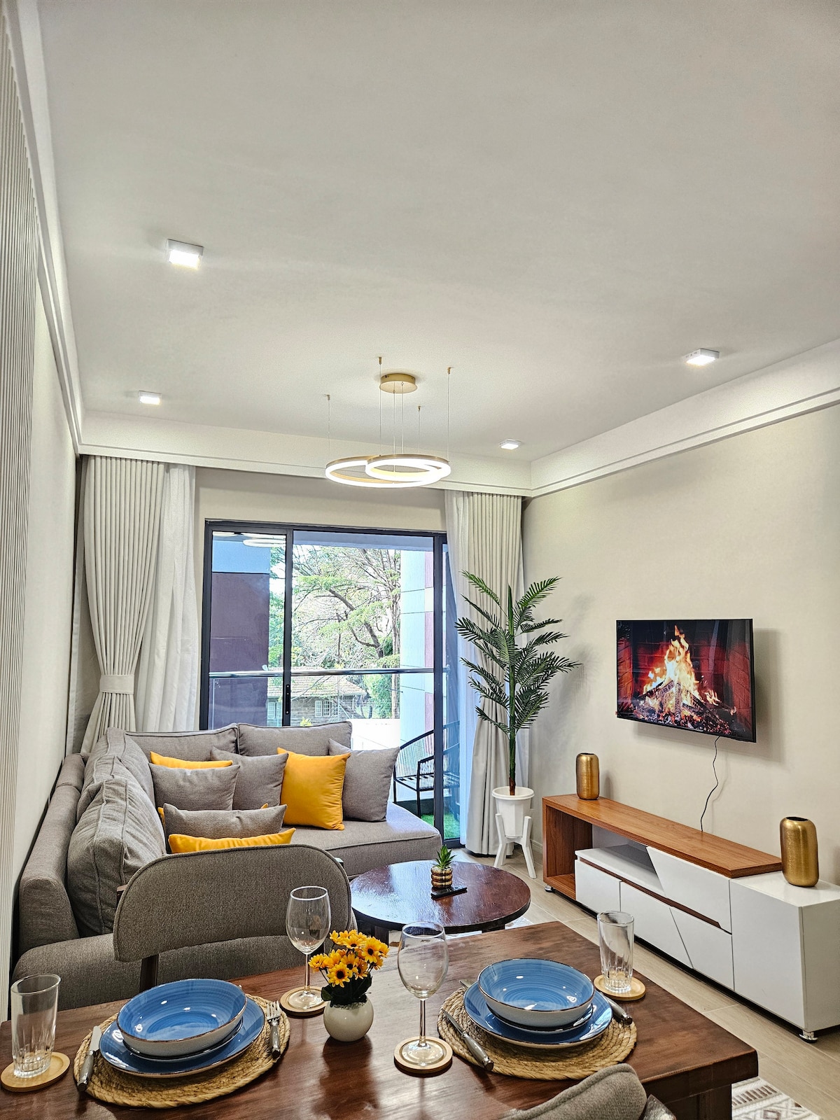 Disfruta de las comodidades modernas en este elegante apartamento de 2 dormitorios con vistas panorámicas de la ciudad, situado en el tranquilo y seguro barrio de Lavington. Diseñado para estancias cortas y largas, cuenta con piscina, gimnasio, wifi de alta velocidad, lavadora y aparcamiento gratuito. A solo 3 minutos a pie del mercado de alimentos Naivas, abierto las 24 horas, y del centro comercial Junction, donde podrás ir de compras, cenar y disfrutar de lugares de interés. Con Valley Arcade, Kilimani, Karen y Westlands a pocos minutos, disfrutarás de comodidad y lujo.