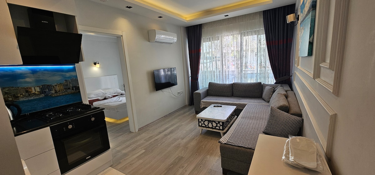 justo en el centro de Kemer. A 170 m del bazar playa de 20 m. A 50 m de la playa. Nuestro aparthotel, que es moderno y nuevo, disfruta de las vacaciones con servicios.