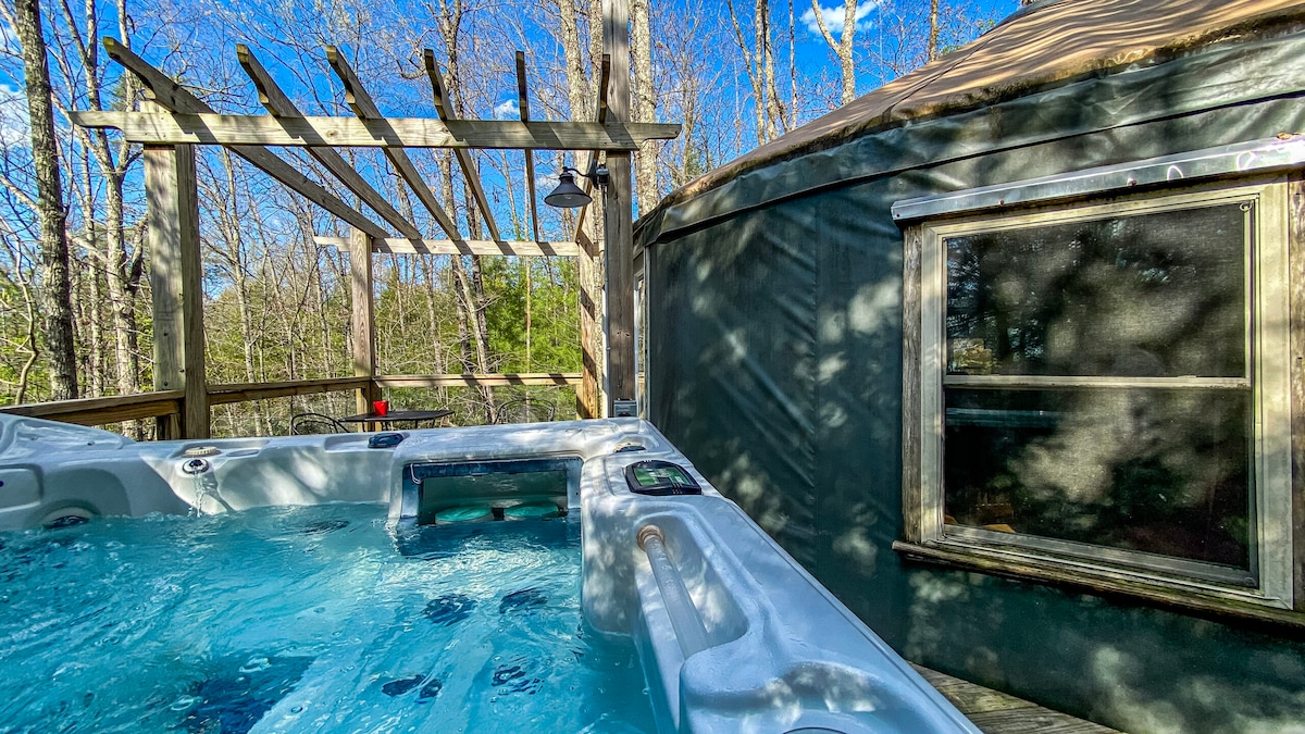 Escápate a Turtle Cave Yurt para disfrutar de un retiro tranquilo diseñado para parejas o viajeros solitarios que buscan paz y conexión. Ubicado en el corazón de Red River Gorge, te despertarás con el canto de los pájaros y el aire puro de la montaña, en plena naturaleza pero sin renunciar al confort. Pasa los días recorriendo senderos con vistas espectaculares y, después, vuelve para relajarte en la bañera de hidromasaje o reúnete junto a la fogata para comer «s’mores» bajo las estrellas. Por la noche, relájate bajo la claraboya de la cúpula de la yurta y duérmete observando las estrellas: sin tienda de campaña, sin insectos, sin complicaciones.