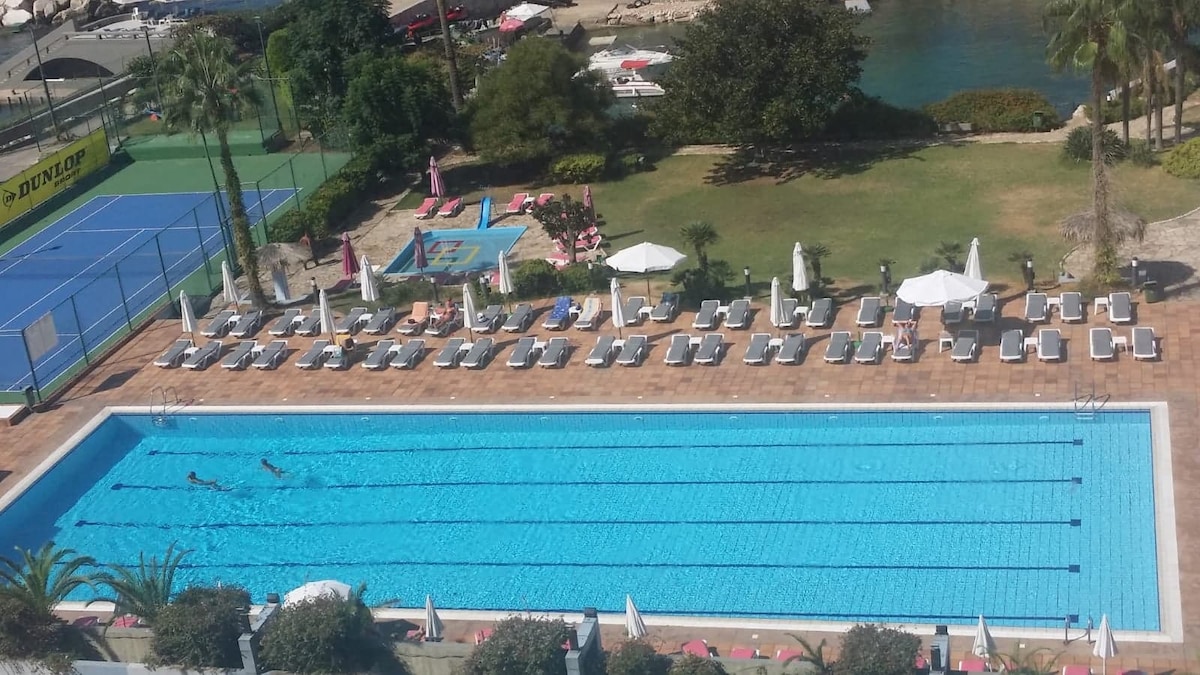 Un apartamento de playa privado en uno de los complejos más exclusivos de la zona, que ofrece excelentes instalaciones. Manar Beach es conocida por su ambiente relajado y agradable, ideal para familias, parejas y profesionales. Cuenta con una zona privada y bien cuidada: • Amplia zona ajardinada. • Piscina • Playa. • Restaurante • Pista de tenis • Gimnasio • Sauna • Jeu de Boules • Ping-pong. • Fútbol de mesa • Parking privado (consulta la sección «Más información») Nota: El uso de electricidad se mide y cobra después de tu estancia a través del Centro de resoluciones de Airbnb.