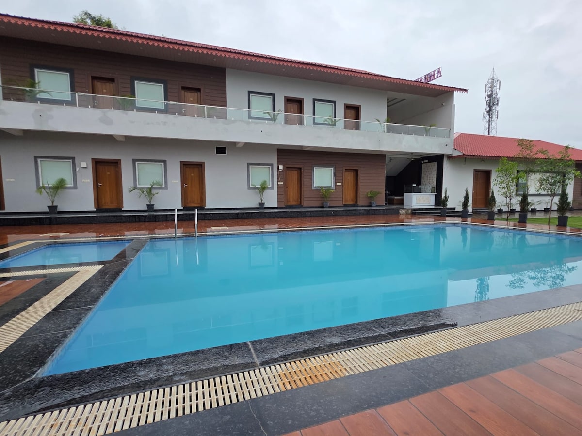 Descubre un eco-retiro con alma a solo 30 km de Udaipur, escondido en el bosque de Aravallis y Kewra. Vive en chozas tribales artesanales con arte Pithora y Bundi, relájate junto a una piscina de piedra natural y disfruta de comidas cocinadas a fuego lento en un mitti chulha con degustación local de Mahua. Despiértate con el canto de los pájaros, camina al atardecer y contempla las estrellas bajo un cielo despejado. Sin Swiggy-Zomato, sin ruido, solo naturaleza, arte y paz. ¡Perfecto para familias, artistas y buscadores de una vida llena de alma y sostenible! ¡Ven a descubrir la auténtica Udaipur!