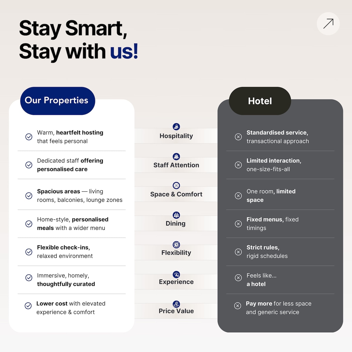 No se permiten fiestas en ningún momento; esta es una sociedad residencial, ten en cuenta a los vecinos y su privacidad. Luminoso 3BR con aire acondicionado, 2 baños (1 en suite) y agua caliente. Capacidad para 6 personas con 2 camas tamaño queen y 1 cama doble. Acogedor salón con televisión Cocina completa, nevera, agua RO. Iluminación cálida/fría conmutable + luces automáticas. Wifi de 40 Mbps (SSID: Horizon | Contraseña: Horizon_A303). Asientos en el balcón, aparcamiento designado, ascensor, respaldo de energía. Registro de entrada autónomo sencillo (código de puerta). El interruptor interior añade seguridad adicional a la puerta.