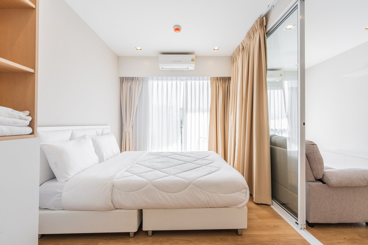 Puedes elegir y alojarte en mi apartamento y espero que tengas un gran viaje a Tailandia. La casa se encuentra en RAMA9, apartamento LOFT entregado en 2024.El tamaño de la habitación es de unos 40 metros cuadrados, incluyendo un dormitorio, una sala de estar y comedor, una cocina y un baño, que puede alojar fácilmente a 3 adultos. (Consejos: 1 cama en el dormitorio cuando la reserva es de 1-2 personas, si necesitas añadir un sofá cama, por favor, rellena el número de personas como 3 en el momento de la reserva, y haznos saber especialmente después de la reserva que organizaremos que el personal haga la cama del sofá antes de que llegues) El precio de la reserva incluye el uso de toda la propiedad, así como el coste del gimnasio, la piscina y el espacio de trabajo compartido.