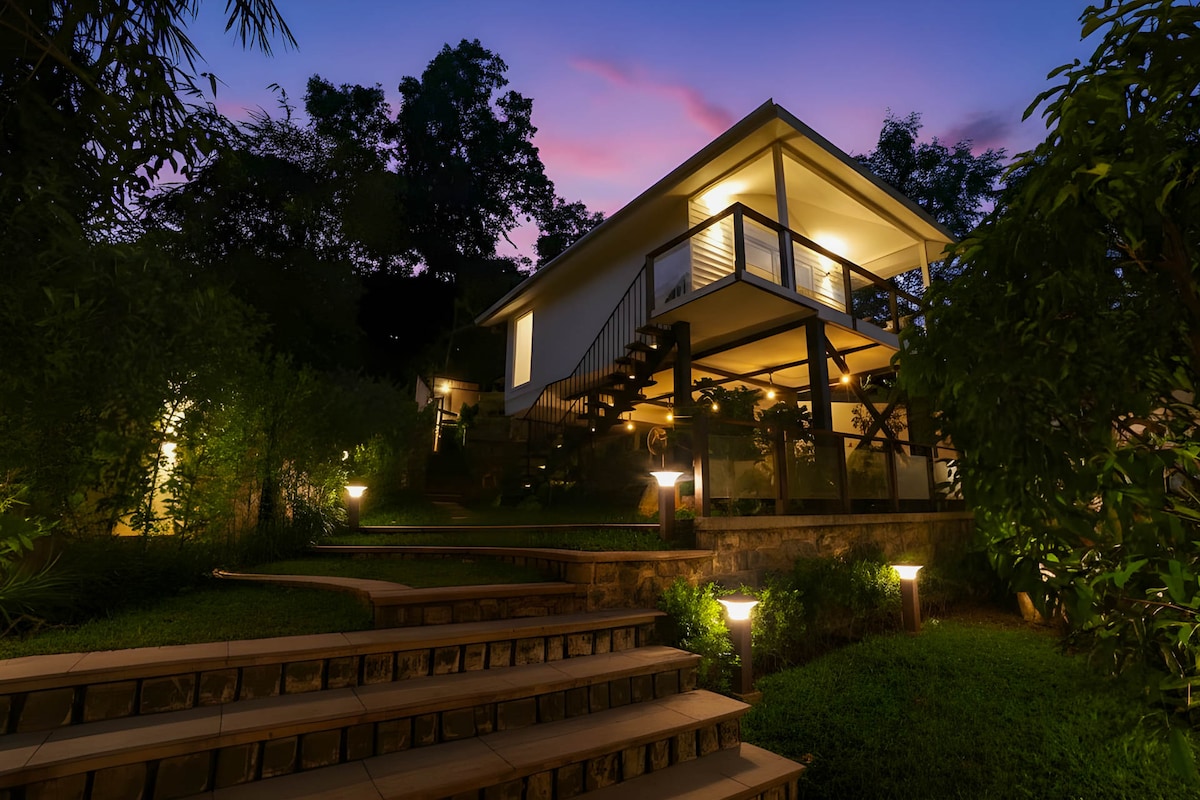 Ekant Villa is a haven where the past and present merge in perfect harmony. It has a earthy coloured texture with brick tiles at exterior where our interiors exude the timeless charm of yesteryears. The outdoor swimming pool is a shimmering paradise, offering not just a refreshing dip but also an opportunity to lie back and gaze at the vast expanse of the sky. The vast terrace unveils a breathtaking panorama of the majestic surroundings. The lawn is a canvas for unforgettable experiences.