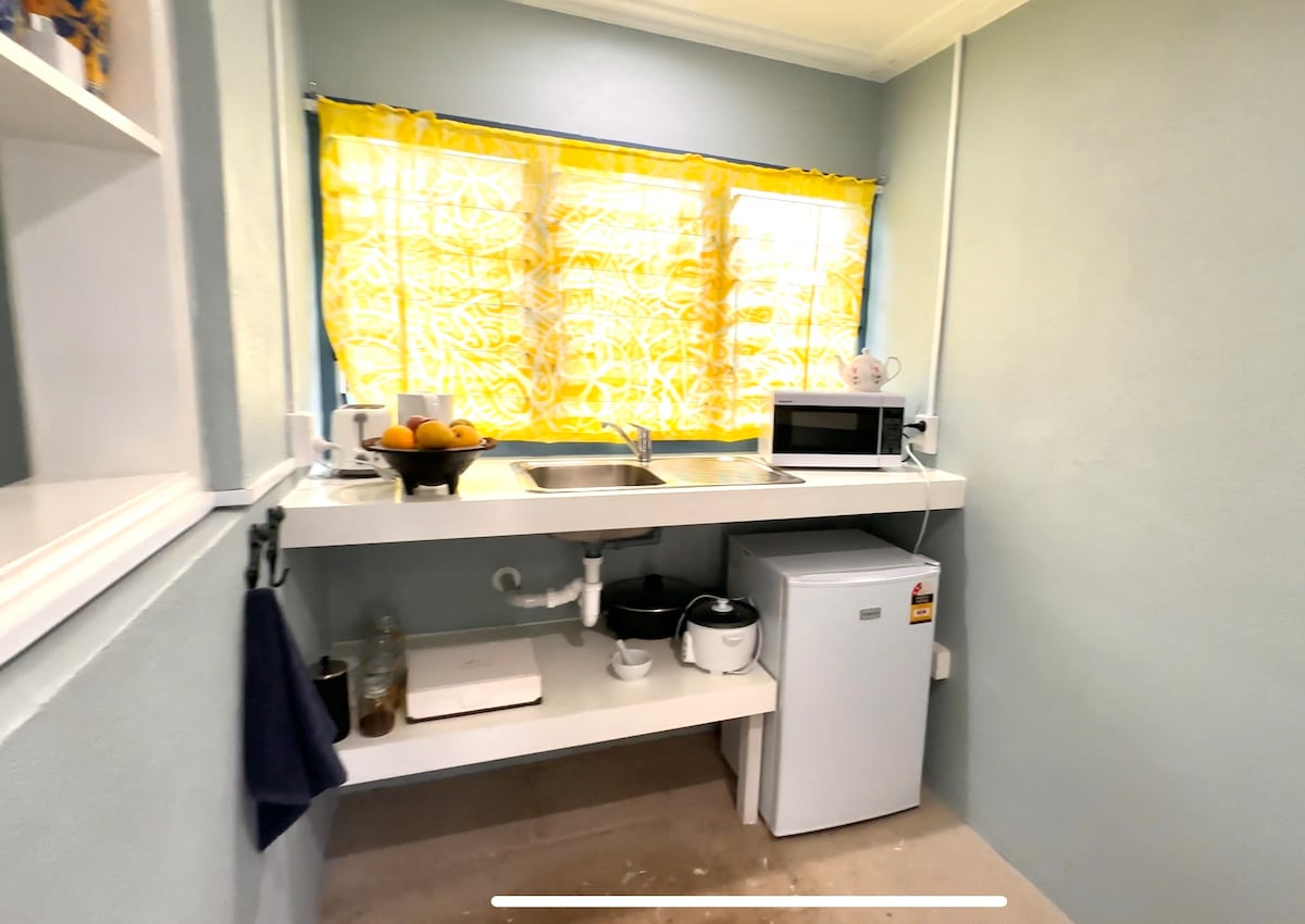 Estudio independiente, limpio y moderno, con baño y cocina americana propios. Nos gusta dejar que nuestros huéspedes disfruten de su privacidad en su propio espacio, sin embargo, estamos disponibles para ayudarte con cualquier consulta o sugerencia. Ofrecemos un desayuno continental gratuito de cereales y fruta fresca local (de temporada) el primer día. Nuestra unidad también está totalmente protegida para mantener a los mosquitos fuera. El número máximo de personas de nuestra unidad es de dos huéspedes. Nuestro alojamiento es adecuado para parejas, viajeros de negocios y viajeros solos.