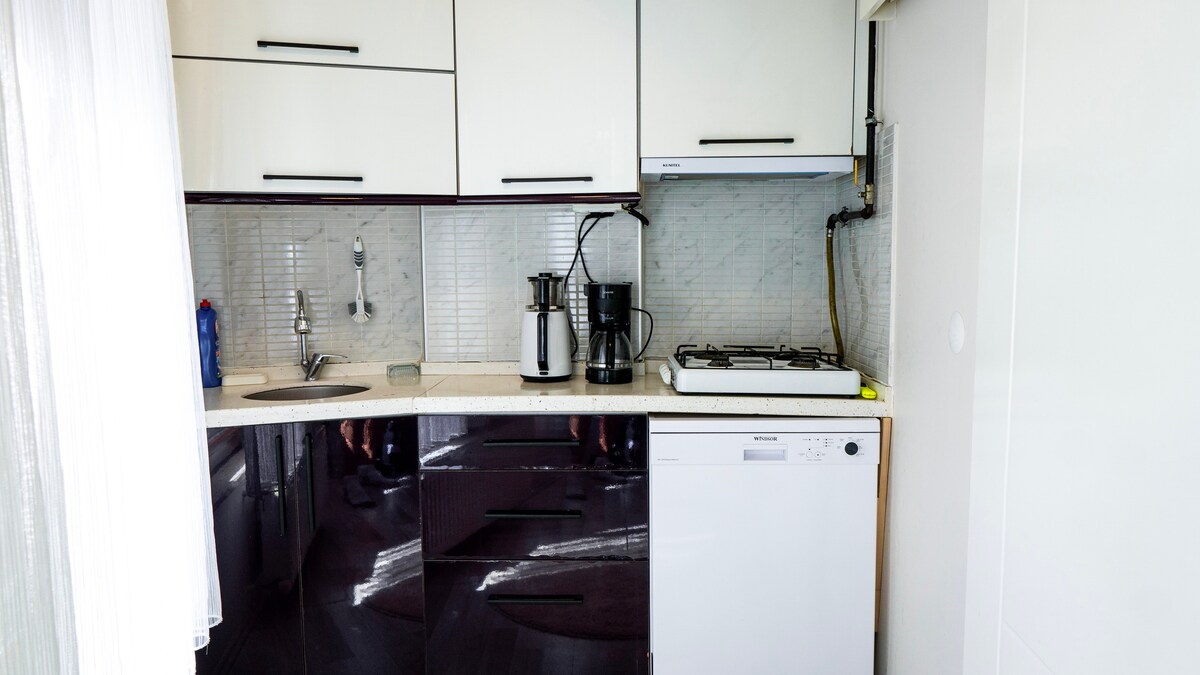 Hola, el apartamento está situado en el centro de la ciudad. Este es el alojamiento en Airbnb más popular de Çanakkale. A 2 minutos a pie del muelle, de la orilla del mar y de la calle de bares. El apartamento dúplex cuenta con cocina, aseo, sala y aire acondicionado en la planta baja. En la planta baja, el asiento en L se abre y puede ser una cama doble. En la planta de arriba hay una habitación y un baño. Hay un aire acondicionado adicional arriba. Al mismo tiempo, puedes ir a la terraza desde la planta superior. También puedes ver el castillo de Grass y el Bósforo desde la terraza. Una casa cómoda y agradable.