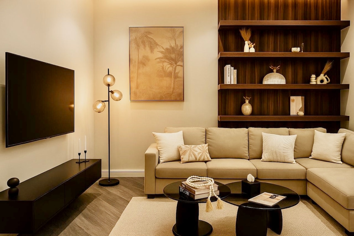 Disfruta de un descuento especial de temporada en Riad cuando te alojes en este acogedor apartamento de 1 dormitorio en el centro de Riad. Perfecto para viajeros solos, parejas o familias pequeñas, ofrece un cómodo dormitorio, una amplia sala de estar con sofá cama y una cocina americana equipada con lo esencial. Con una televisión inteligente, un escritorio y una zona de comedor, cada detalle está diseñado para la comodidad. Ubicado cerca de lugares emblemáticos como la fortaleza de Masmak y el Kingdom Centre, es la base perfecta de la ciudad.