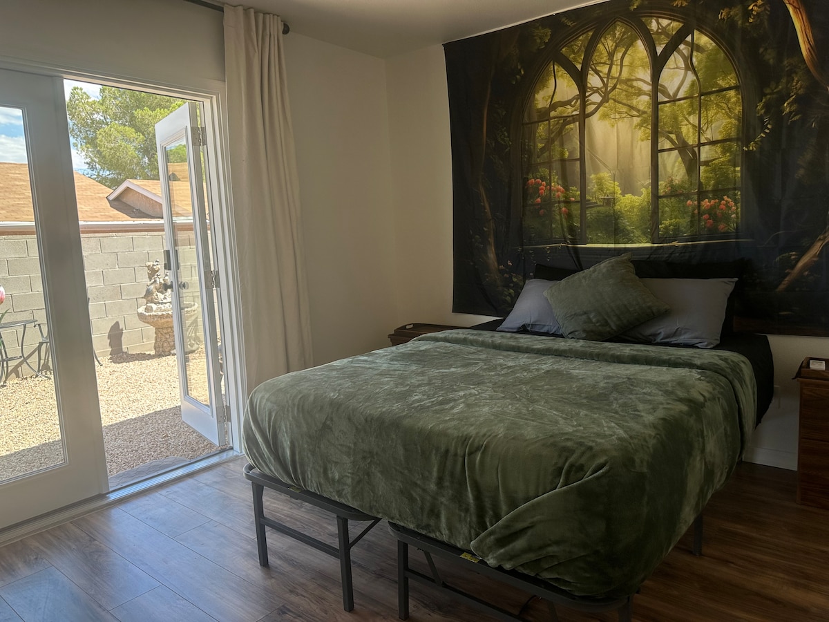 Nueva y elegante unidad triplex: esta casa de 1 dormitorio y 1 baño tiene capacidad para 4 personas y se encuentra en una ubicación perfecta a pocos minutos del centro médico regional, la I40, la Ruta 66 y el centro histórico de Kingman. La casa también está muy cerca de muchos restaurantes populares, campo de golf local e incluso Starbucks. Lo que separa esta casa de otras en la zona es que tienes tu propio patio, patio cubierto, lavadora y secadora y todos los utensilios para comer y beber junto con una nevera de tamaño completo, barbacoa de gas al aire libre, Smart TV, etc.