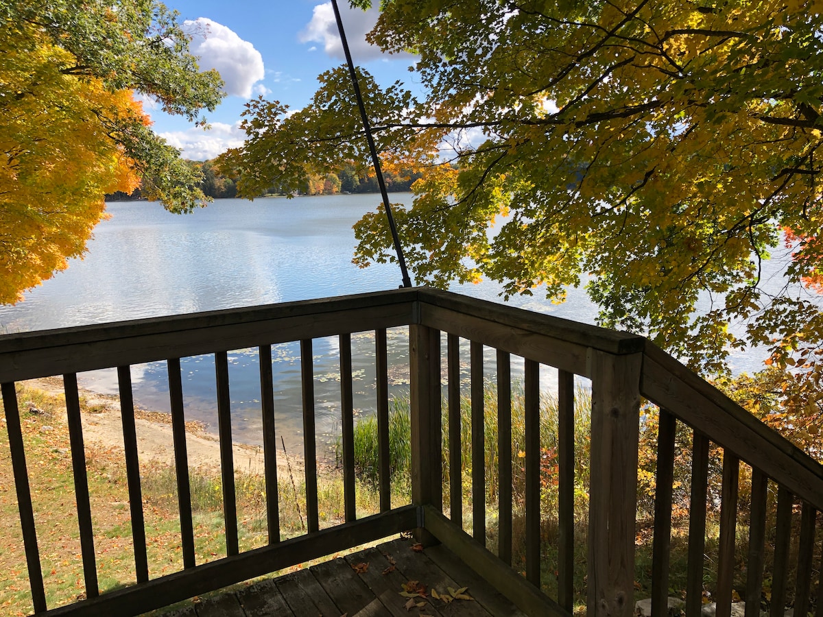 Este es el perfil de reserva de verano para Camp Watercombe. Casa rural clásica de 1920. Hermoso lote boscoso maduro con 350 pies de playa privada frente al lago. ¡Apto para las 4 estaciones y para perros! Cuando se ponga el sol, toma una copa de vino para disfrutar de las increíbles vistas al agua desde tu terraza orientada al atardecer. Más tarde, disfruta de una fogata de playa, contempla las estrellas desde la chimenea en la cima de la colina o quédate y acurrúcate frente al lago con la estufa de leña. Explora granjas, cervecerías y bodegas locales y los numerosos y maravillosos productores de alimentos cercanos