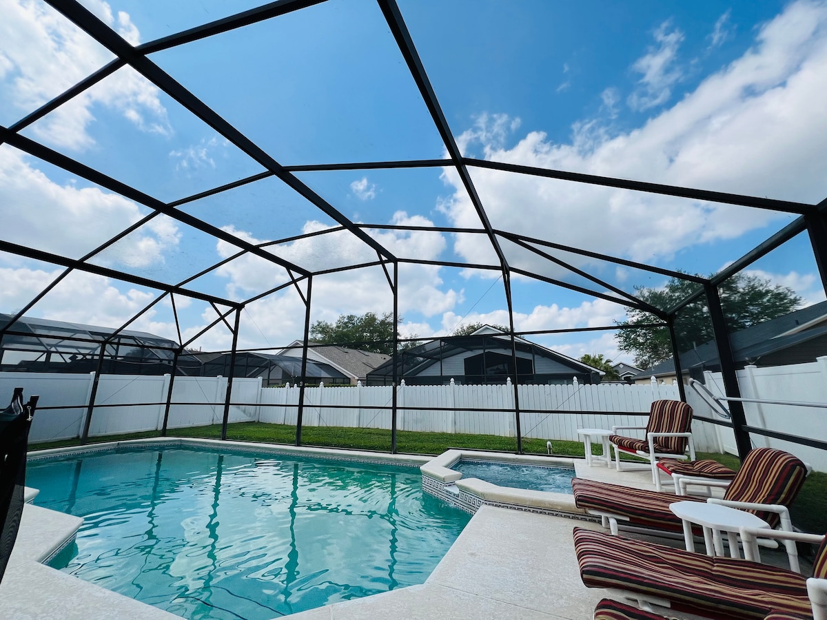 Preciosa villa de 3 dormitorios y 2 baños situada en un terreno de 1/4 de acre, con nuestra propia piscina y jacuzzi privados, climatizados e internet de alta velocidad. Situada en una comunidad residencial tranquila en el codiciado Sunridge Woods en Davenport, a solo 9 millas de Disney. Ten en cuenta que NO se permite fumar ni celebrar fiestas en las instalaciones de la casa. No hay calentador de piscina disponible de mayo a octubre. **También DEBES ser mayor de 21 años para alquilar esta propiedad**