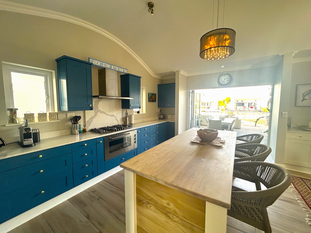 Trae a toda la familia a este gran alojamiento con mucho espacio para divertirse. La casa se encuentra en el canal con un amarre privado y vistas increíbles de las vías fluviales. La piscina está en un patio aislado que recibe mucho sol del norte. Salones abiertos que conducen a la terraza exterior. Hay tres dormitorios con baño en la planta superior. La cocina está totalmente equipada con una vitrocerámica de gas. La casa cuenta con inversor y chimenea de gas. Thesen Island es un lugar mágico con control de acceso de seguridad las 24 horas.