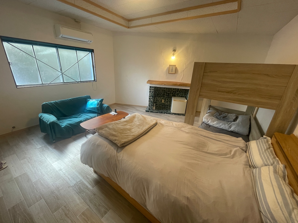 - Sobre el uso en invierno - * Las reservas para diciembre, enero y febrero requieren neumáticos sin clavos. Goemon House se encuentra en la meseta, y la temperatura es de 3 a 5 grados Celsius más baja que la llanura.Cuando vengas en coche, lleva un neumático sin tachuelas o una cadena para neumáticos. En invierno, a menudo baja de cero, y las tuberías de agua se han congelado hasta ahora. Esta vez, haremos un alojamiento privado en invierno mientras evitamos la congelación, pero utilízalo teniendo en cuenta la posibilidad de que el suministro de agua se vuelva inutilizable. Proporcionamos unos 20 litros de agua y agua potable en una botella de plástico para que puedas usarla en caso de emergencia. La habitación cuenta con aire acondicionado y chimenea.Pueden usarla con calidez en interiores.