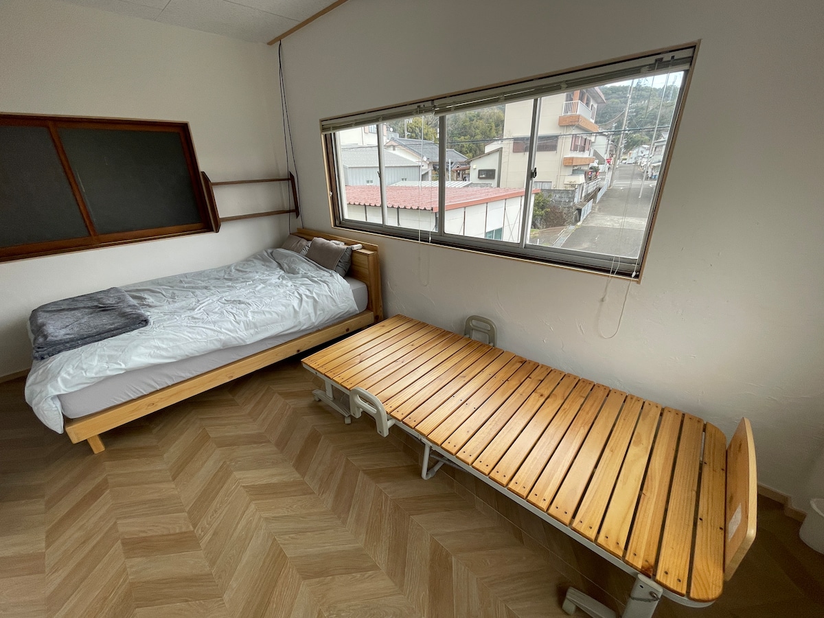El edificio azul de Hirano A 1 minuto a pie de las escaleras de la playa de surf de Hirano. Puedes comprobar las olas desde tu habitación o terraza. Relájate observando las estrellas y las olas por la noche. Olvídate del bullicio de la ciudad y disfruta de lo extraordinario. (La playa de Hirano es una playa de surf, por lo que no está permitido nadar.Hay una playa cerca. Instalación de un proyector con pantalla de 100 pulgadas. Puedes ver contenido de vídeo en la pantalla grande. También hay un pequeño parque de patinaje (lámpara) en el sitio. Es un poco seguro en los días sin olas. (risas) Junto con el edificio verde en las mismas instalaciones, tiene capacidad para 10 personas. Puedes ir y venir entre los dos edificios en la cubierta de madera, pero también está separada para que puedas alojarte con otro grupo. Puedes utilizar dos grupos grandes, un edificio para grupos pequeños, familias y viajeros solitarios. El anfitrión vive a poca distancia a pie, así que avísame si tienes algún problema. * No es una instalación de lujo.Es una casa unifamiliar de 15 años afectada por daños causados por la sal. ◎Descuentos por la duración de la estancia 7 días o más → 20 % de descuento →40 % de descuento para estancias de un mes o más