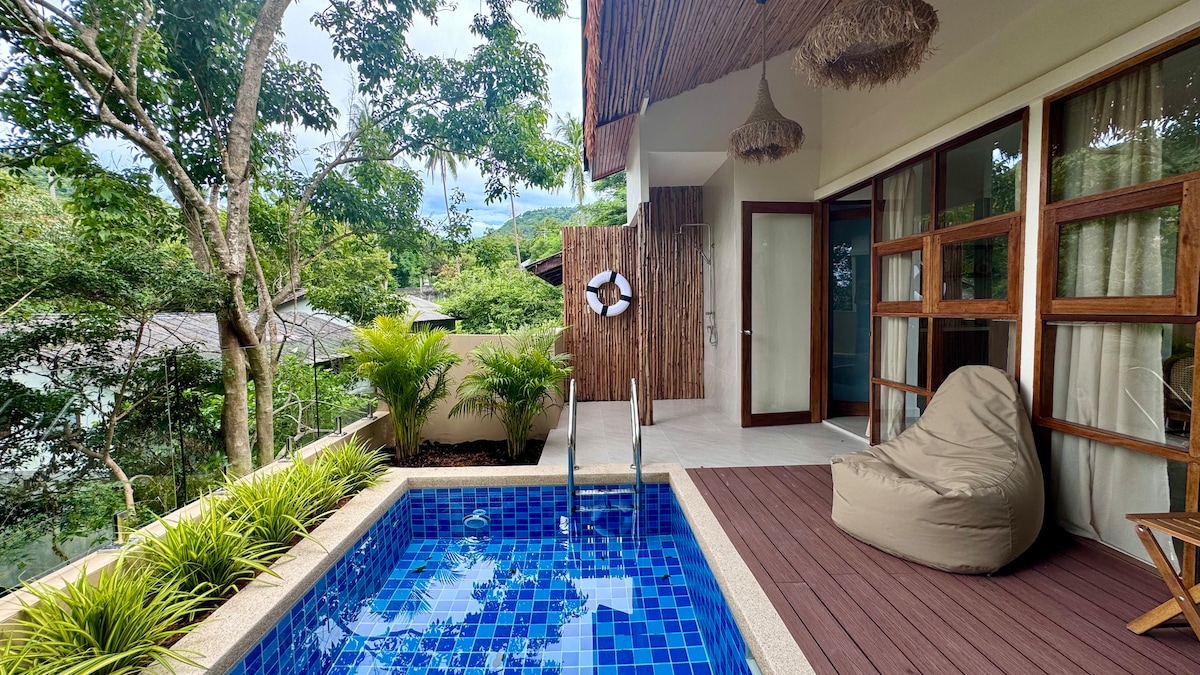 Disfruta del refugio tropical perfecto a pocos minutos de la vibrante aldea de pescadores. Esta villa de 1 dormitorio de estilo balinés es la escapada perfecta para parejas o viajeros solitarios que buscan una serenidad completa. Adéntrate en tu oasis de piscina privada, completo con tumbonas para la máxima relajación bajo la sombra de las palmeras que rodean la villa. Disfruta despertando con vistas a la piscina desde los ventanales del suelo al techo. La cocina y el salón ofrecen la comodidad del hogar y el lujo de un centro vacacional de 5 estrellas.