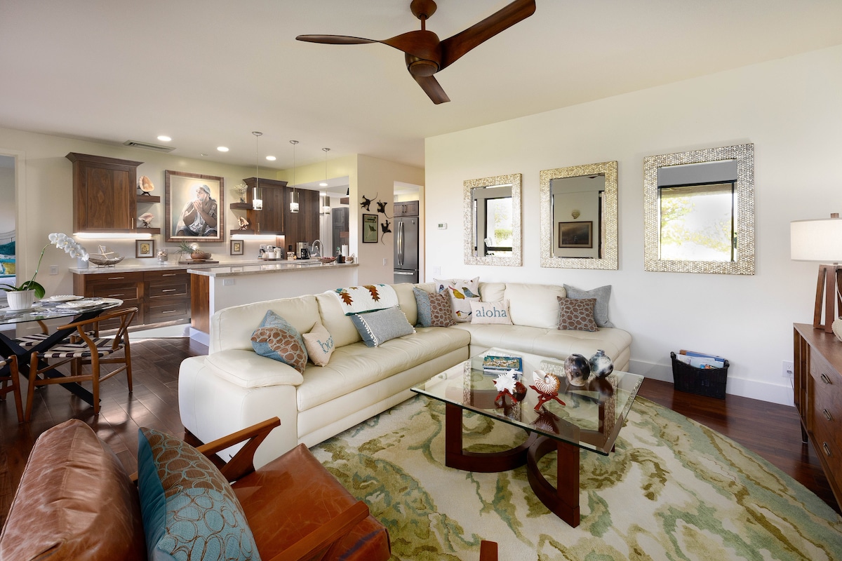 ¡Casa adosada de 2 dormitorios y 2,5 baños en la hermosa Fairways en Mauna Lani! Decorado con buen gusto y bien equipado con todo lo necesario en tu hogar lejos de casa. Piscina estilo resort/bañera de hidromasaje/gimnasio en el lugar. Muy cerca de playas, tiendas y restaurantes. ¡Acceso al club de playa para todos nuestros huéspedes! Dejamos nuestra tarjeta de acceso para que nuestros huéspedes la usen durante su estancia: aparcamiento privado cerrado, uso gratuito de cabaña/tumbona. ¡INCREÍBLE PLAYA para relajarse, hacer esnórquel y disfrutar de actividades acuáticas!