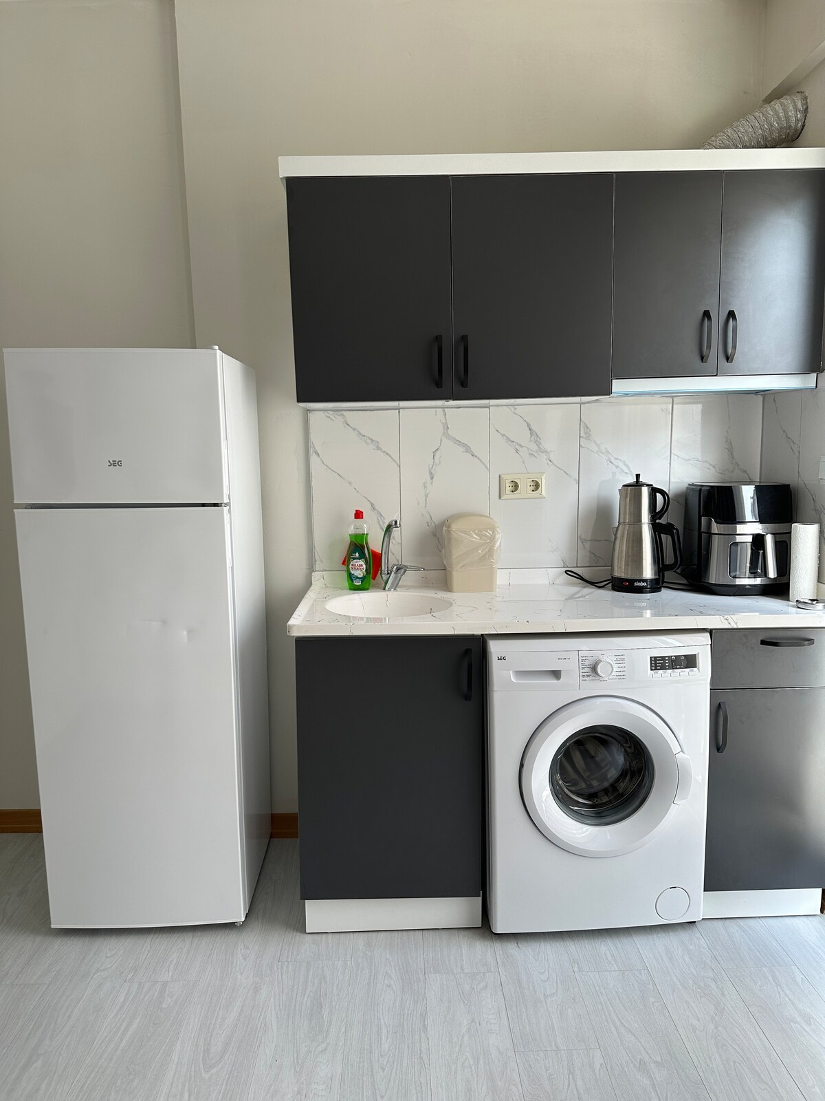 Cerca del centro de la ciudad, a solo 5 minutos a pie de la playa, nuestro apartamento 1+0 con fácil acceso al mercado local y tiendas de comestibles ofrece un espacio de vida ideal. La cocina cuenta con estufa, lavadora y utensilios básicos de cocina. Tu comodidad está garantizada con agua caliente constante y un servicio de recepción las 24 horas, los 7 días de la semana. Tu seguridad está a la vanguardia con el sistema de calefacción de gas natural y las cámaras de seguridad alrededor del edificio. Perfecto para familias en una zona tranquila y fiable, adecuada para 3 personas.