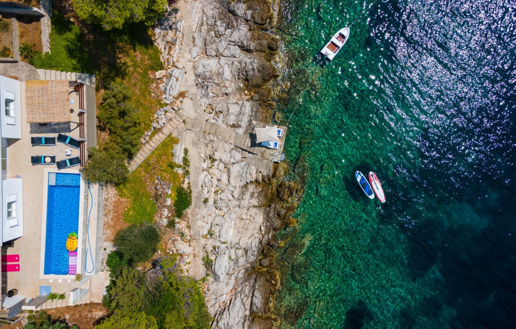 Summer House Bougainvillea is located right above the crystal clear waters of the Adriatic sea. Explore hidden coves by villa's kayak and SUP, or island using 4 bikes (2 electric) swiping through the picturesque vineyards and olive tree roads. Start the day with breakfast on the summer kitchen's terrace, enjoy the dinner on a stunning sea view terrace. Read a book and eat local grapes in your cabana, enjoying the quiet evenings filled by crickets chirping and sea waves melody.