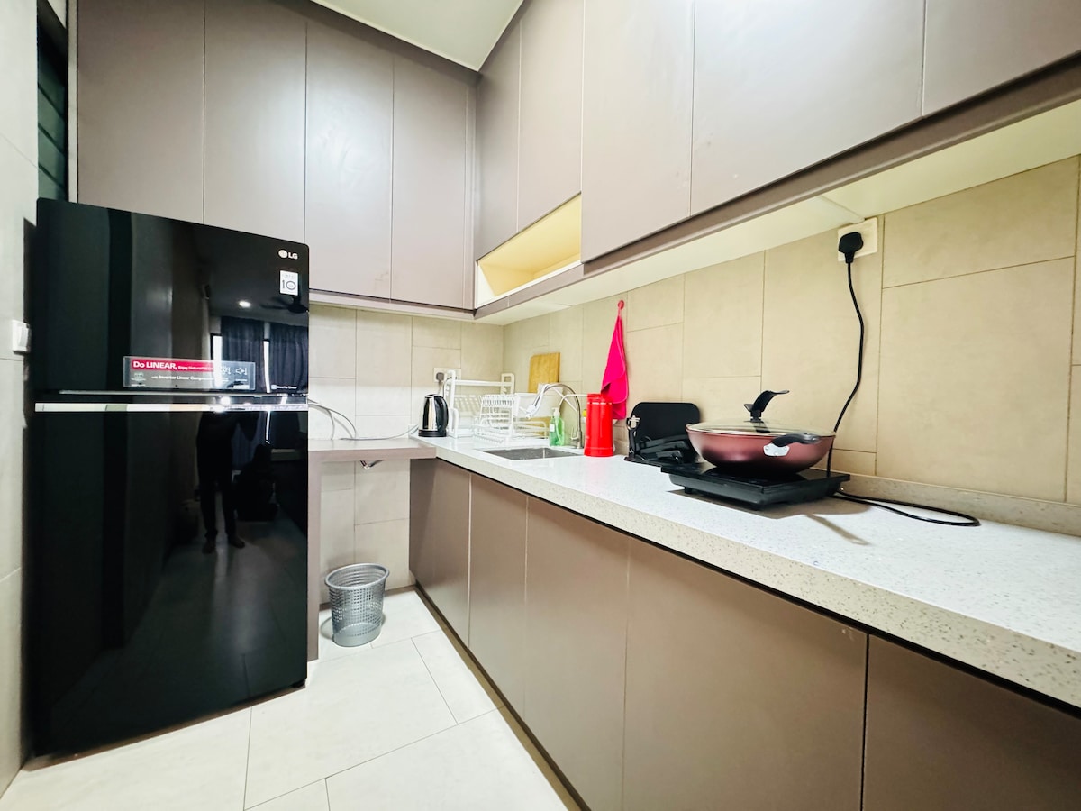 Experimenta comodidad y conveniencia en nuestro moderno apartamento de servicio, perfecto tanto para estancias cortas como largas. Nuestra suite ofrece: Amplia sala de estar: Relájate en un espacio acogedor y bien amueblado con mucha luz natural. Cocina totalmente equipada: Prepara tus comidas favoritas con nuestras modernas instalaciones de cocina. WiFi de alta velocidad: Mantente conectado con internet rápido y fiable. Ubicación privilegiada: Ubicado en el corazón de Shah Alam, con fácil acceso a atracciones locales y centros comerciales.