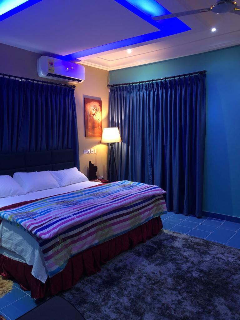 Apartamento de dos dormitorios con decoración elegante para que la familia y amigos se relajen y se queden. Sofá elegante en la sala de estar con mesa de cristal Tower Mount y conexión a Internet de fibra totalmente funcional. Cocina amueblada para la cocina. Aire acondicionado totalmente conectado, así como ventilador en ambas habitaciones y TV en ambas habitaciones con DSTV y antena terrestre. Un entorno sereno, a 20 minutos del aeropuerto internacional de Kotoka. Cámaras de CCTV en la entrada del porche del apartamento por tu seguridad. A 5 minutos a pie de un gimnasio. A 3 minutos de un restaurante.