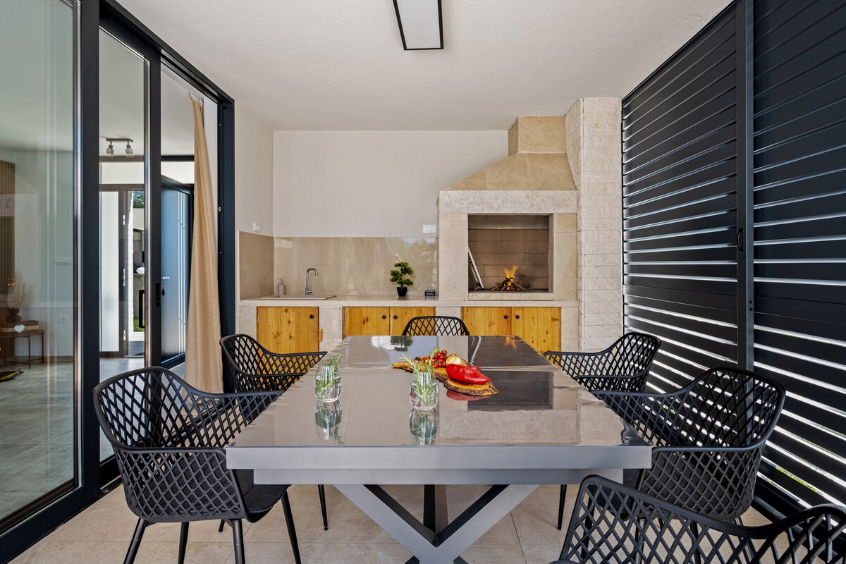 Relájate con tu familia y amigos en este cómodo alojamiento, una nueva villa construida en 2022 con una piscina de 32 m2 a solo 2 km de la playa y el mar. Villa Gondolika **** cuenta con: 3 habitaciones 3 baños aseo + servicio la cocina salón piscina Barbacoa estacionamiento privado para 3 carros Vistas al mar y a la montaña. La casa se encuentra en el tranquilo lugar de Gondulići, cerca del casco antiguo de Labin, donde encontrarás mercados, restaurantes y tiendas. Cerca de la casa hay senderos para caminar y montar en bicicleta.