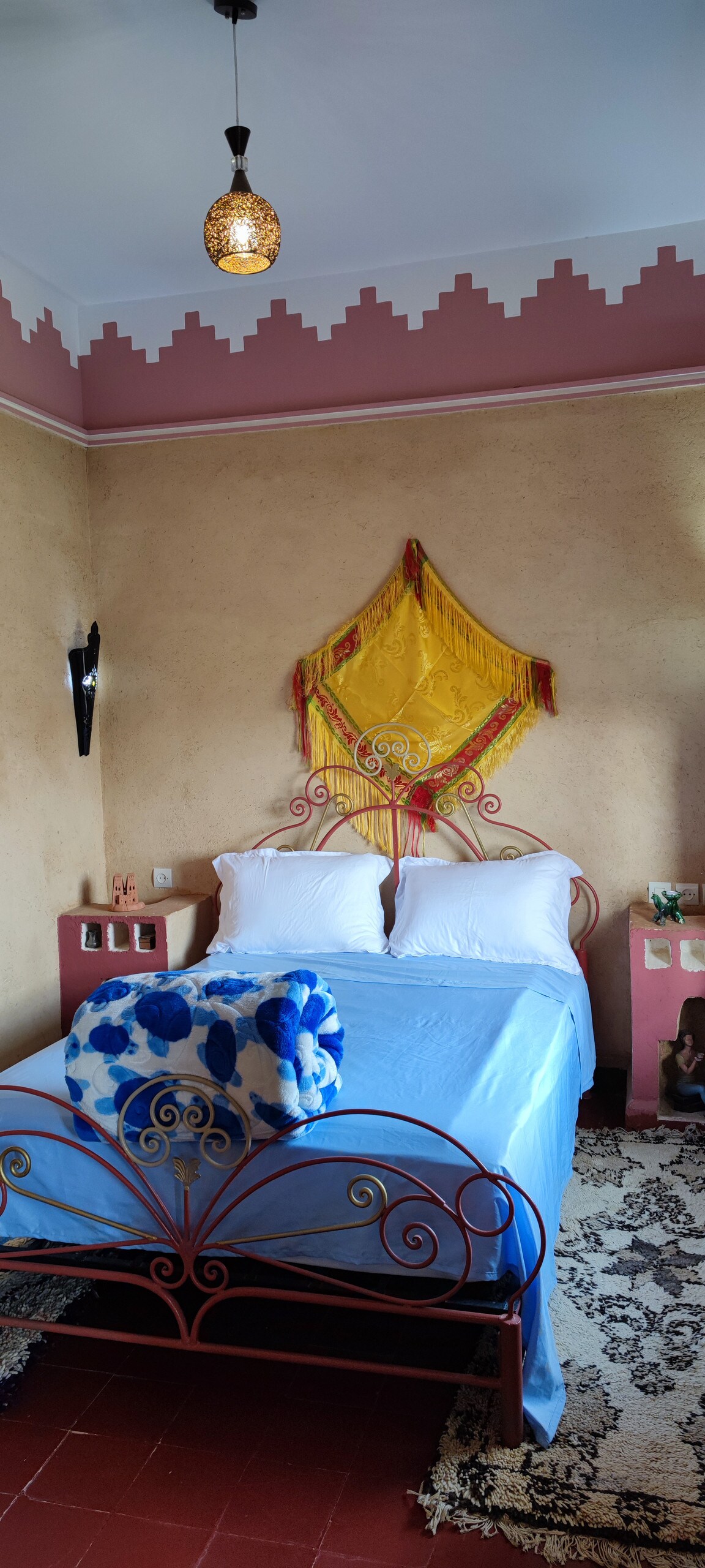 Bienvenido a Dar Toda, una casa de huéspedes tradicional marroquí situada en el corazón del tranquilo paisaje desértico de Zagora. Dar Toda, pintado en azul y amarillo dorado de Majorelle, es un oasis donde las comodidades modernas se encuentran con el encanto del patrimonio bereber. Disfruta de la calidez de la hospitalidad marroquí con cómodas habitaciones con paredes de arcilla, vistas al horizonte de Zagora en la azotea y auténticas actividades culturales.
