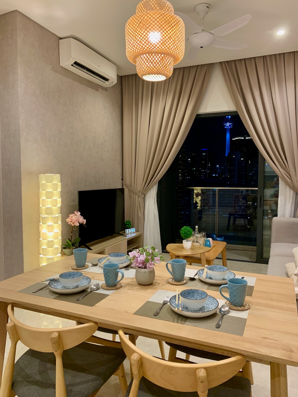 Siéntate y relájate en este espacio tan tranquilo y elegante. Why Panoramic 2BR suite at Lucentia: - Las mejores vistas de Kuala Lumpur. - Bellamente decorado con un espíritu divertido. - Ubicado en el centro y conectado al centro de transporte público - Wifi rápido - 2 televisores con Netflix y otros - 2 albercas preciosas - Ambiente familiar con cuna y trona. - Gimnasio, mesa de billar, barbacoa, piano - Estacionamiento en el garaje. - Recomendado para 4 personas, máximo 6. - El centro comercial LaLaPort y la calle de entretenimiento WOW están adjuntos. - Tienda de comestibles, farmacia y cine, etc.