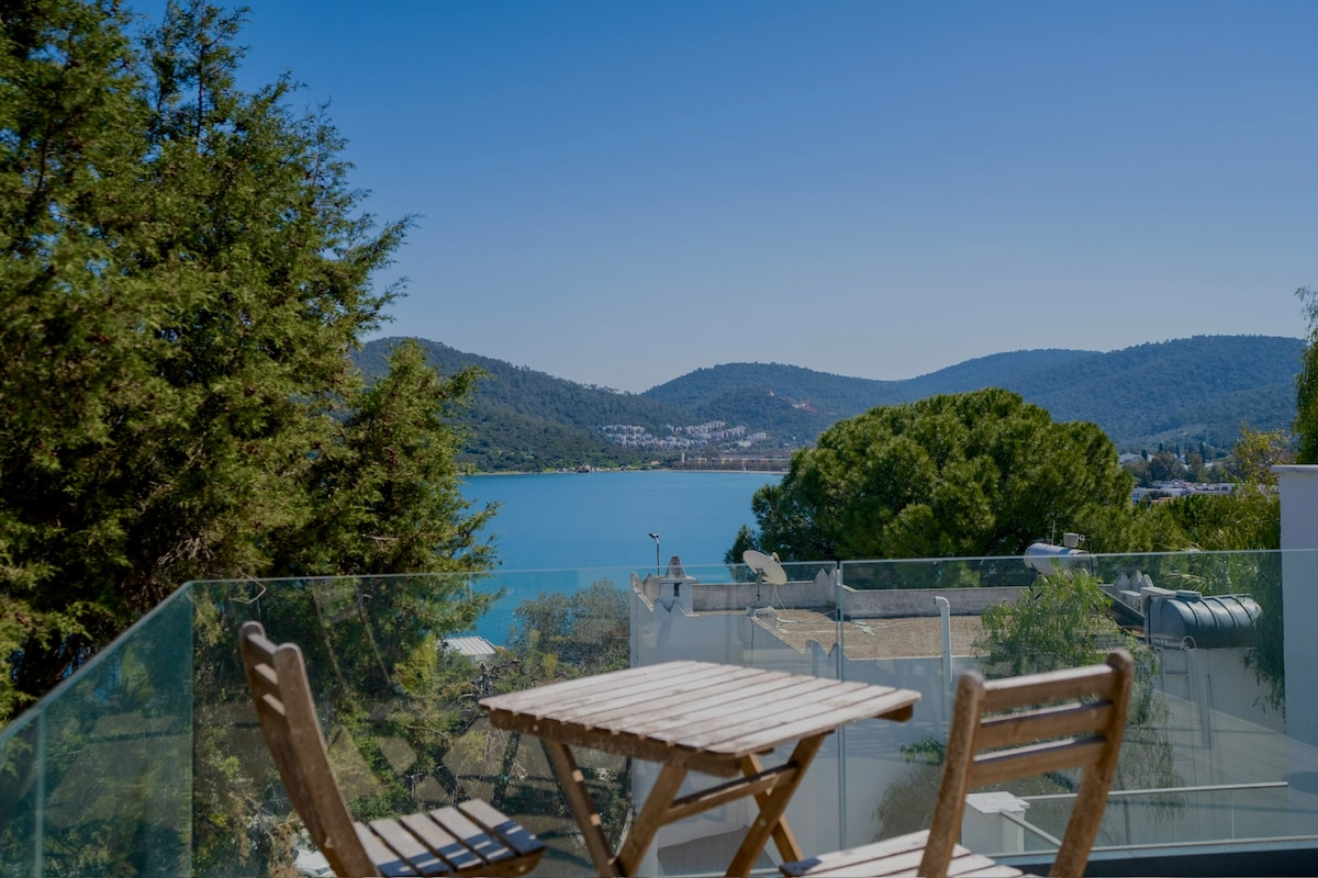 Tranquilas vistas increíbles al mar de 2 dormitorios en Bodrum