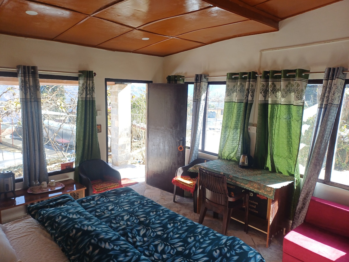Relax with the whole family at this peaceful place to stay. Enjoy forest easy Hill Top Track senic View of Nanda Devi India's second highest snow peak and Valley View Devine forest and Mesmerizing Picnic spot. complementary breakfast and 3 time tea
