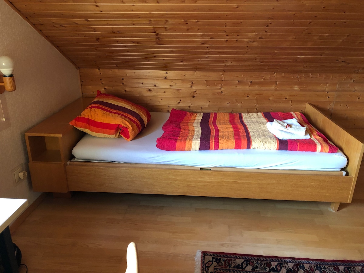 Nuestros huéspedes pueden disfrutar de un pequeño apartamento en dos niveles con un gran balcón. Tiene su propia entrada, por lo que puede disfrutar de su estancia sin ser molestado. Justo en los alrededores hay una panadería, tiendas y una parada de autobús desde la que se llega a Fulda en poco tiempo. El hospital también está a solo un kilómetro. Bajo petición también se puede utilizar la lavadora.