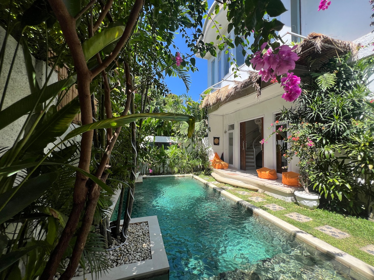 Villa favorita de los huéspedes en★ Airbnb / 30 veces Superanfitriones / Evaluaciones A++ ★ Amplia villa Seminyak con servicios con estilo: todo cerca Ubicación ★ A+: a pie de playa, las mejores cafeterías, tiendas ★ 3 dormitorios grandes con aire acondicionado + 3 baños en suite + sala de lujo/comedor ★ Cocina totalmente equipada ★ Piscina privada + jardín exótico Wifi ★ de fibra óptica, cine en casa, servicio de limpieza, aparcamiento, barbacoa, traslado 1/1 vez al aeropuerto (5 y 5 noches o más, ver preguntas frecuentes), todos los servicios ★ Perfecto para amigos, parejas, familias + niños