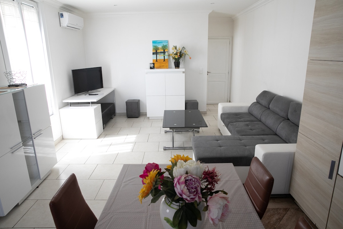 Disfrute de un apartamento decorado con buen gusto a 2 minutos de las playas de Cannes en una residencia segura. El apartamento es ideal para una pareja o familia con un niño . - plaza de aparcamiento en residencia cerrada (a 2 minutos a pie del alojamiento) - Cama Queen size (160 x 200 cm) -Butaca convertible (90X200 cm) -Netflix -Aire acondicionado reversible -Cocina totalmente equipada -Lavadora secadora -Restaurantes y comercios cerca número de registro: 06029032085WF