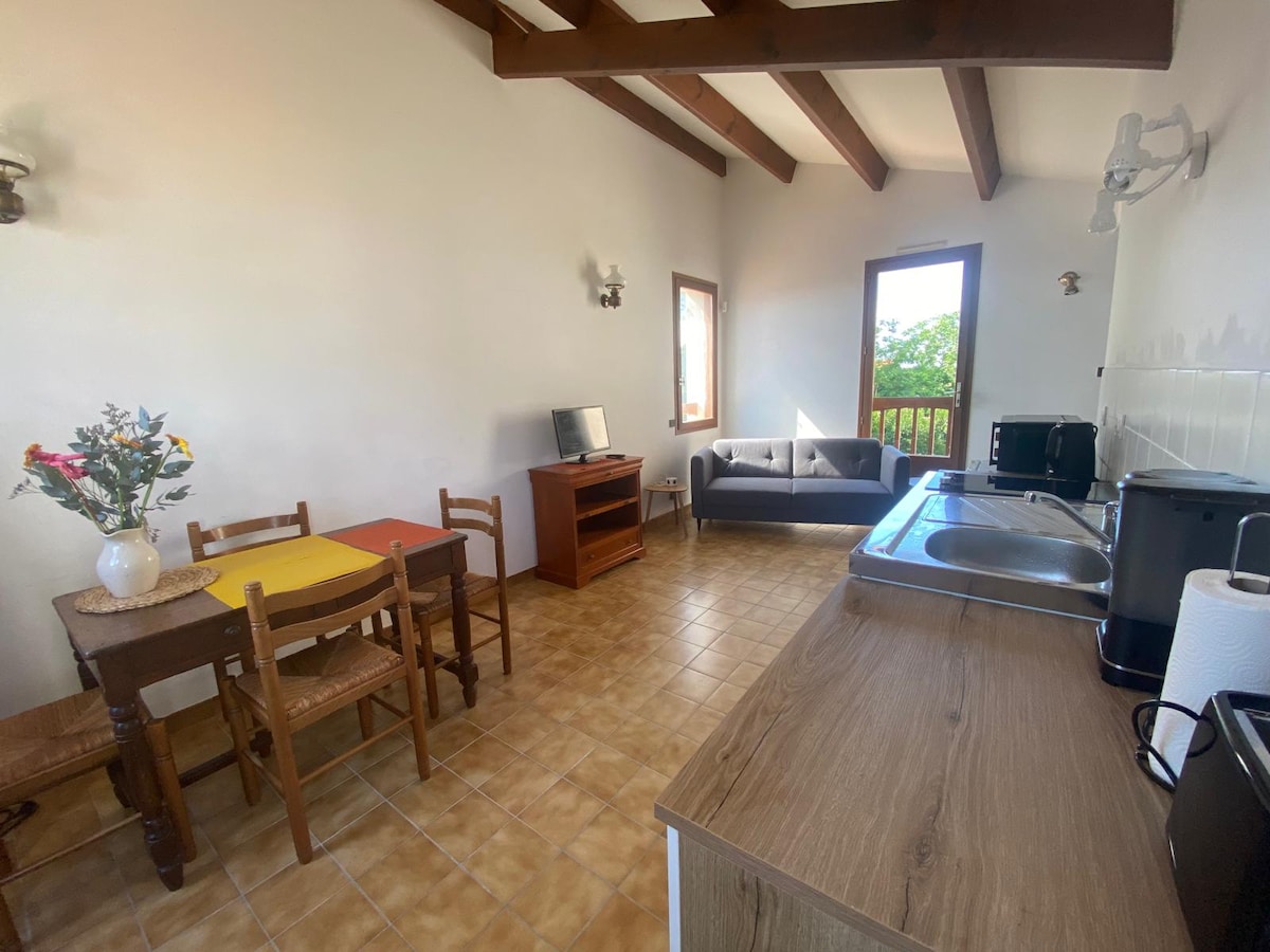 Este alojamiento adosado renovado en 2020 para 1 o 2 personas: - Planta baja con zona de cocina, zona de estar con TV y sofá, WC - Planta bajo techo: * cuarto de baño con lavabo, ducha, inodoro y espacios de almacenamiento * habitación de 16 m² (cama de 140 x 190) con gran armario de almacenamiento y ventilador (en verano).