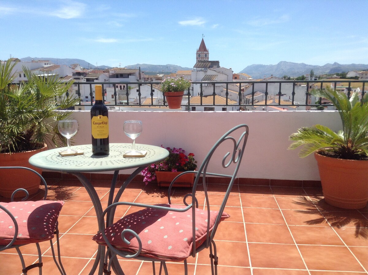 Casa señorial situada en la plaza del pueblo, wifi gratuita, gran patio y terraza con vistas, 250 m2 de vivienda , piscina privada climatizada los meses de mayo, junio, septiembre y octubre. A escasos metros de la vivienda puede disfrutar de multitud de servicios, bares, restaurantes, tiendas, zonas de paseo. Enclavado en la puerta de la Serrania de Ronda, a tan solo 5 minutos de Ronda y 10 minutos a Setenil.