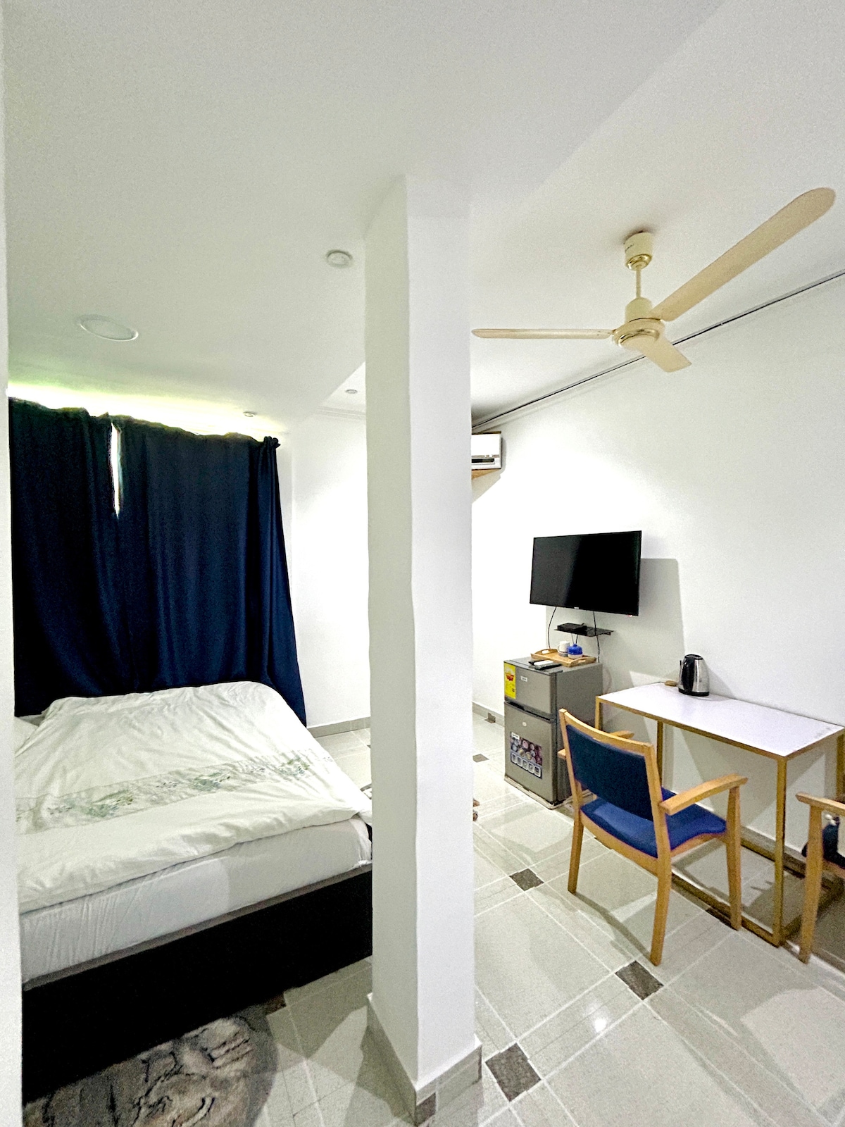 Your extraordinary Accra experience begins here. Book now and see why guests say ‘home away from home only gets better.’ Access to rooftop pool and gym. This stylish unit in Airport Residential offers hotel-level comfort. Enjoy a queen bed, vibrant yellow sofa, smart TV, fast Wi-Fi, cool AC, kitchenette, and a calm balcony. Walk safely to Airport City, restaurants, malls, cafés and Roman Ridge. 5-10 mins drive to airport. Perfect for business travelers, couples, solo guests and weekend escapes